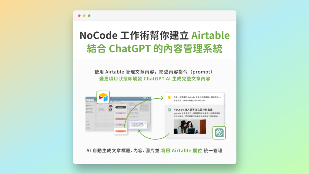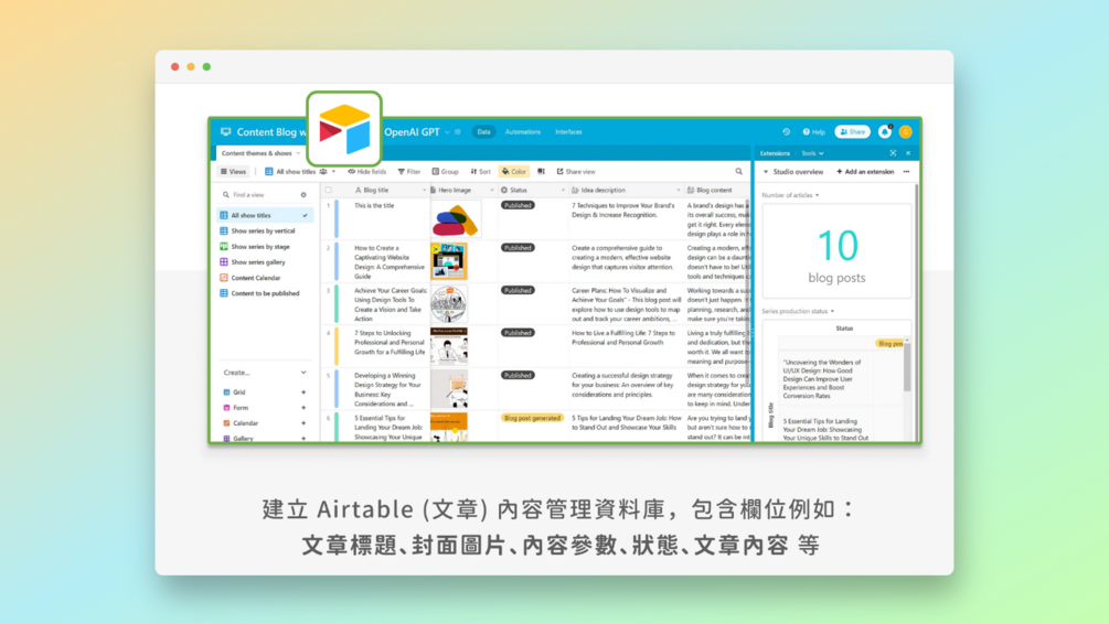 運用 ChatGPT AI 自動生成圖文並茂部落格內容,一鍵高效管理文章狀態 - Make 自動化工具進階範本 (同時加碼 Airtable 的資料庫範本,並包含不同風格樣式的管理介面)